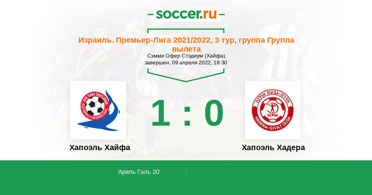 Протокол матча Хапоэль Хайфа против Хапоэль Хадера
