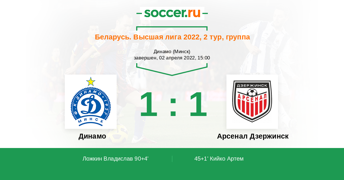 Протокол матча Динамо против Арсенал Дзержинск
