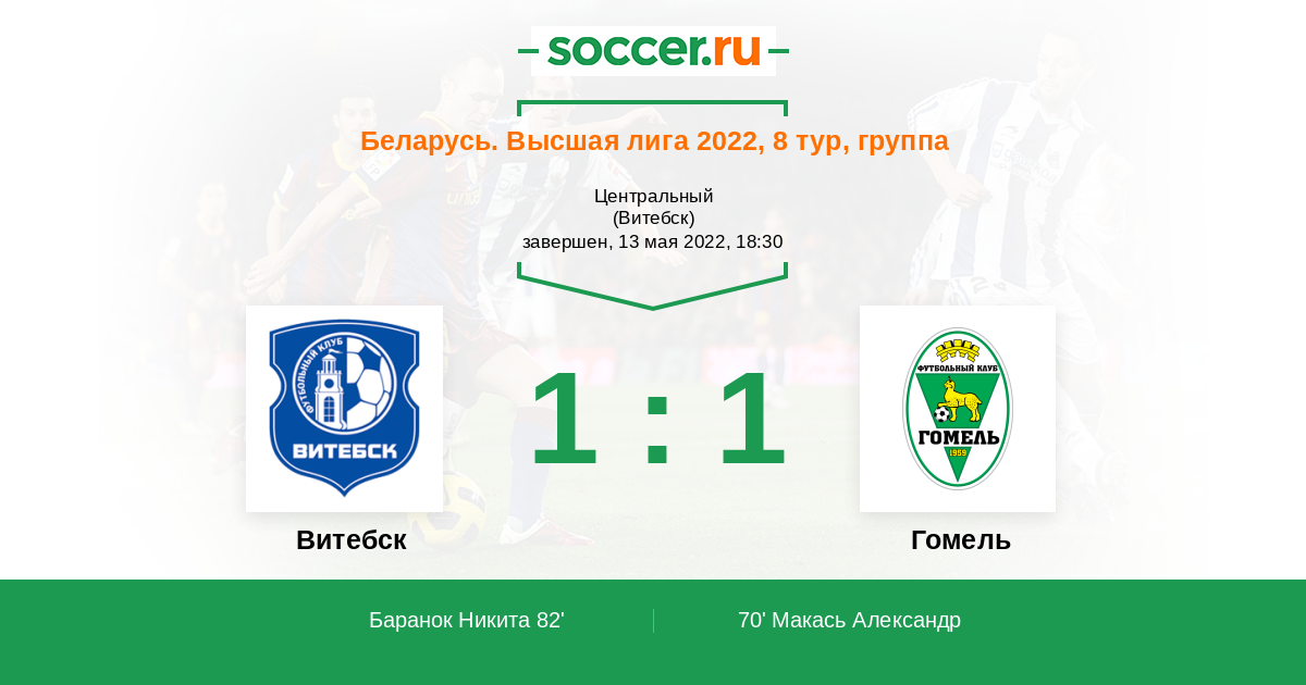 Протокол матча Витебск против Гомель