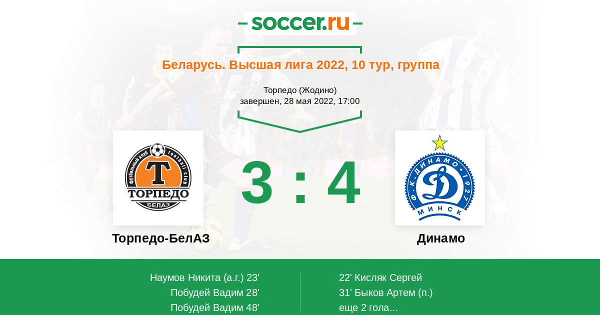 Протокол матча Торпедо-БелАЗ против Динамо