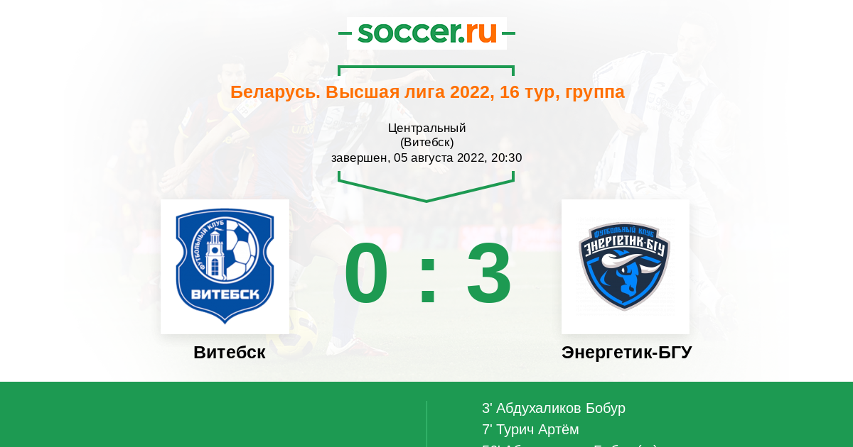 Протокол матча Витебск против Энергетик-БГУ
