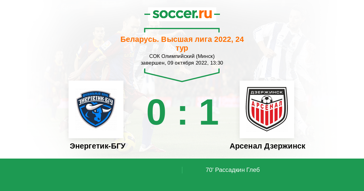 Протокол матча Энергетик-БГУ против Арсенал Дзержинск