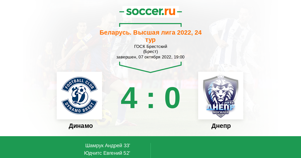 33' (1:0) Шамрук Андрей (22) (Гордейчук Михаил (62))