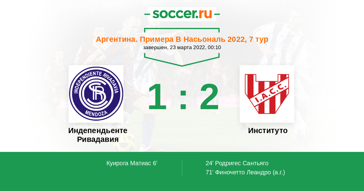 Протокол матча Индепендьенте Ривадавия против Институто