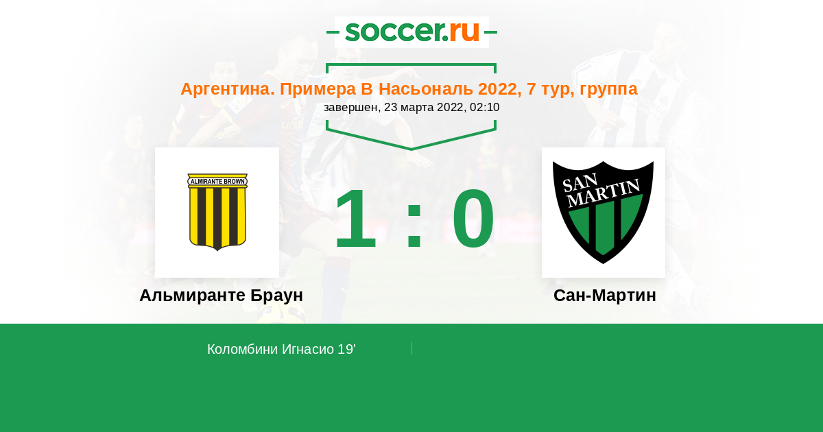 Протокол матча Альмиранте Браун против Сан-Мартин