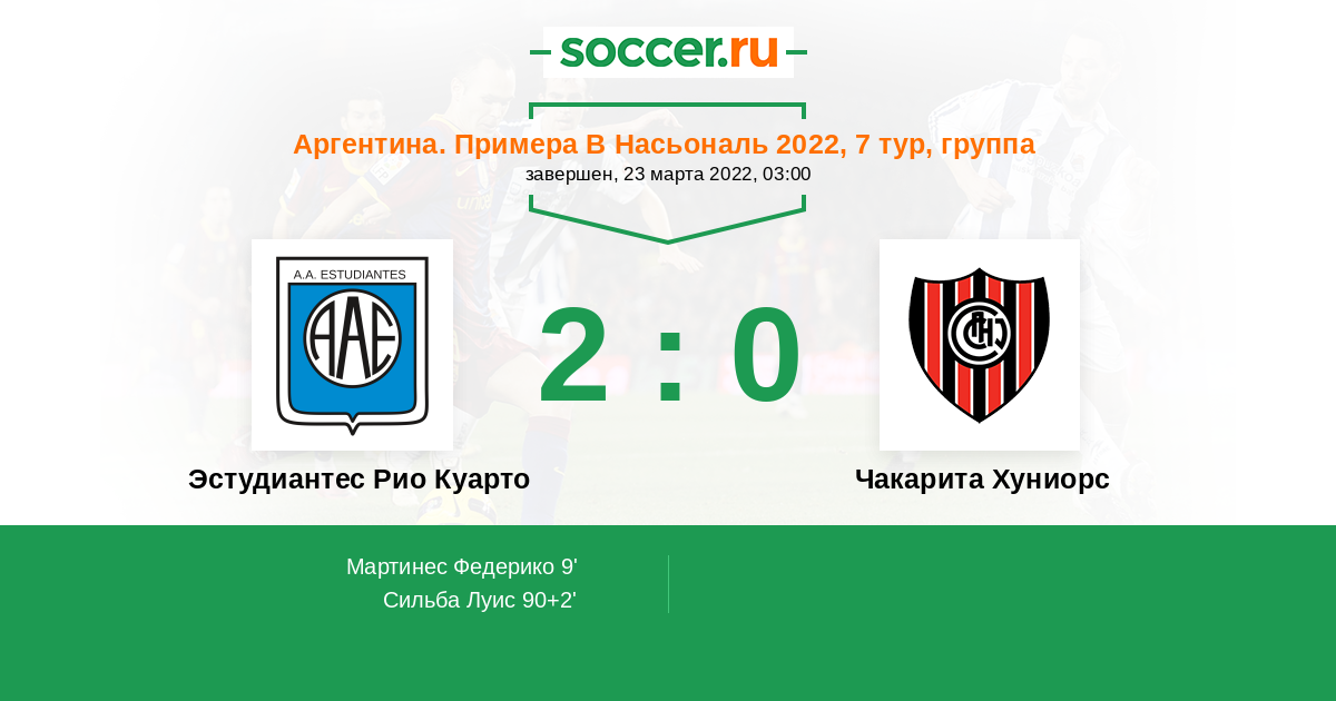 Протокол матча Эстудиантес Рио Куарто против Чакарита Хуниорс