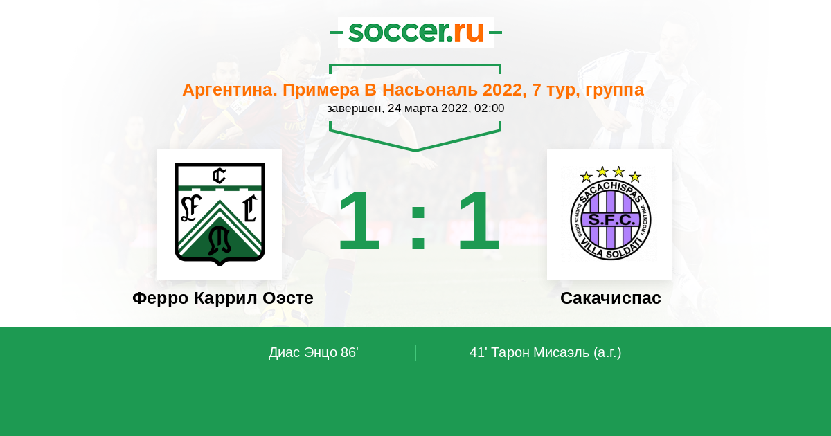 Протокол матча Ферро Каррил Оэсте против Сакачиспас