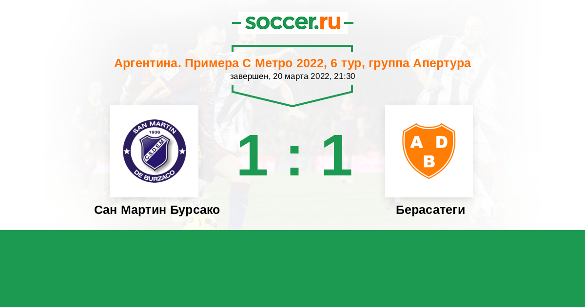 Аргентина. Примера С Метро 01.07.2023 Сан Мартин Бурсако Логотип футбольный клуб Сан Мартин Бурсако 1:1 Логотип футбольный клуб Берасатеги (Буэнос-Айрес) Берасатеги
