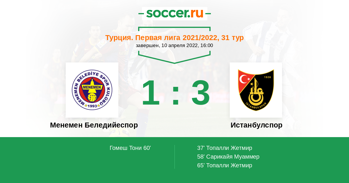Протокол матча Менемен Беледийеспор против Истанбулспор