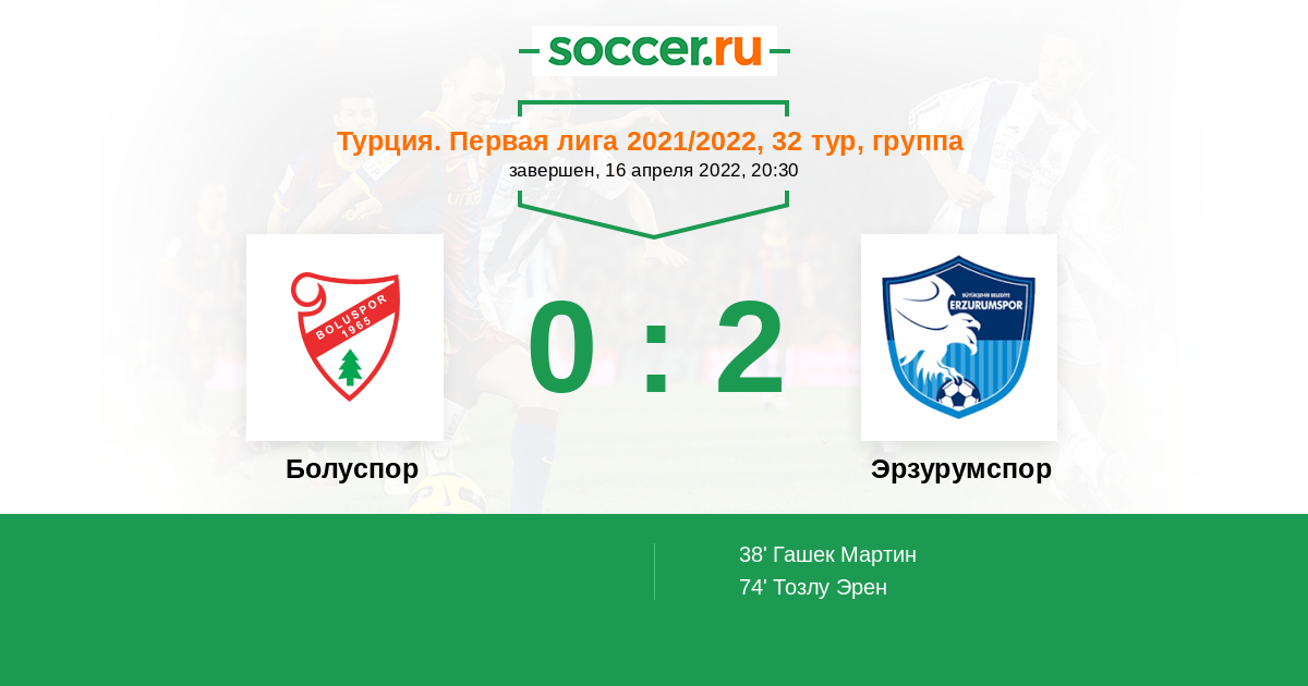 Протокол матча Болуспор против Эрзурумспор