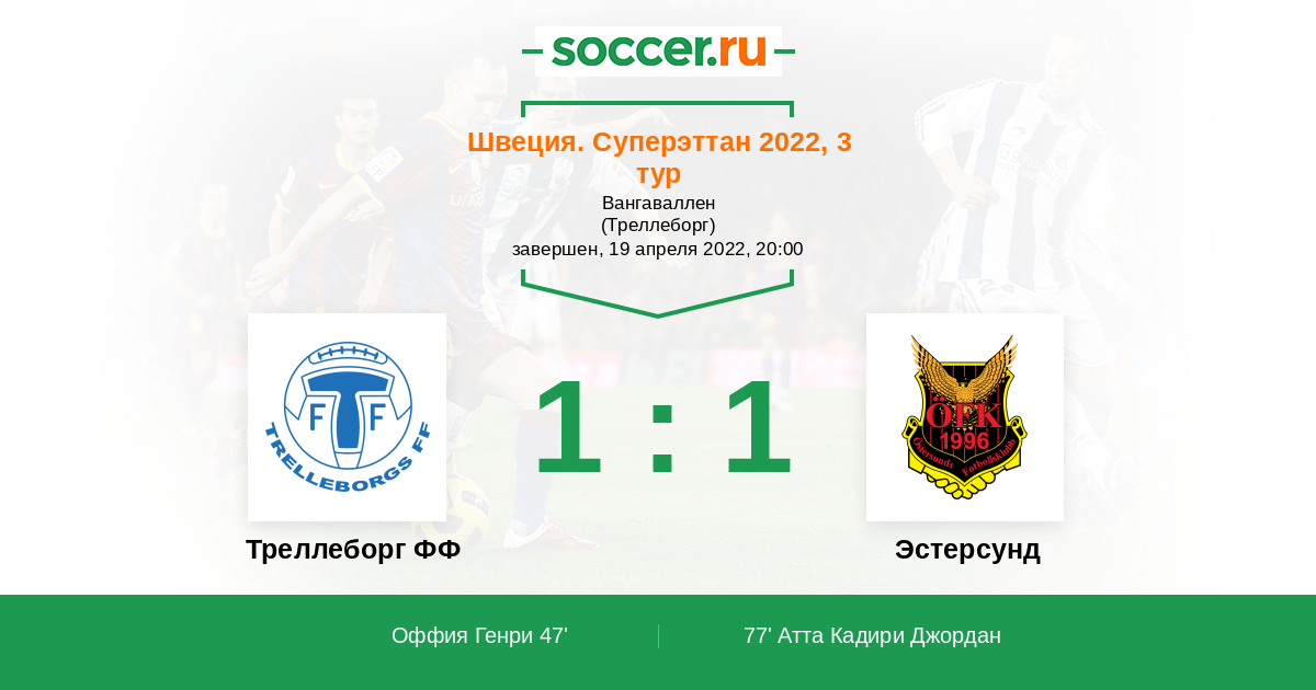 Протокол матча Треллеборг ФФ против Эстерсунд