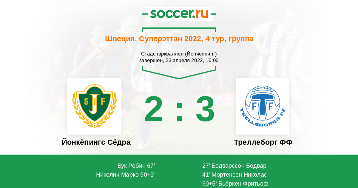Протокол матча Йонкёпингс Сёдра против Треллеборг ФФ