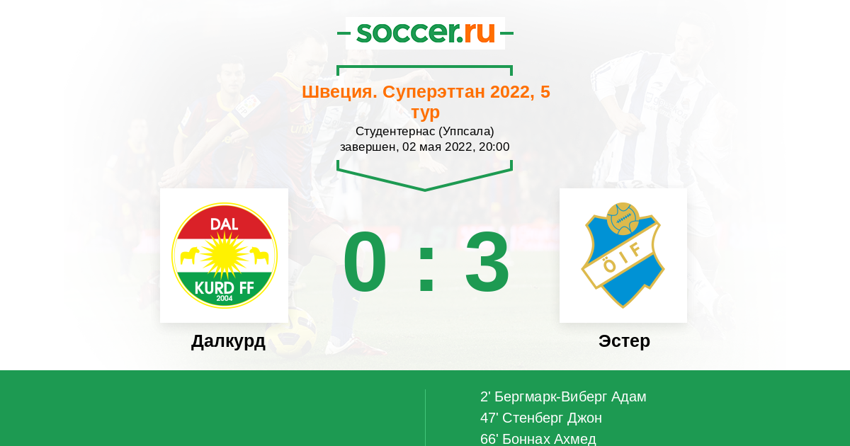 Протокол матча Далкурд против Эстер