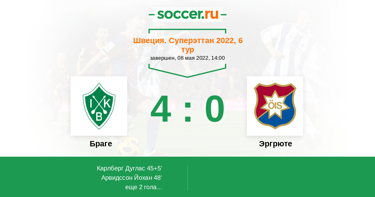 Протокол матча Браге против Эргрюте