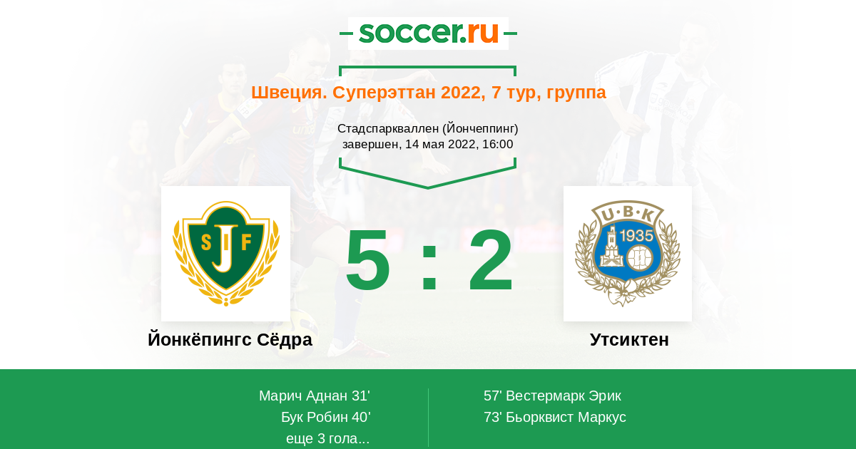 Протокол матча Йонкёпингс Сёдра против Утсиктен