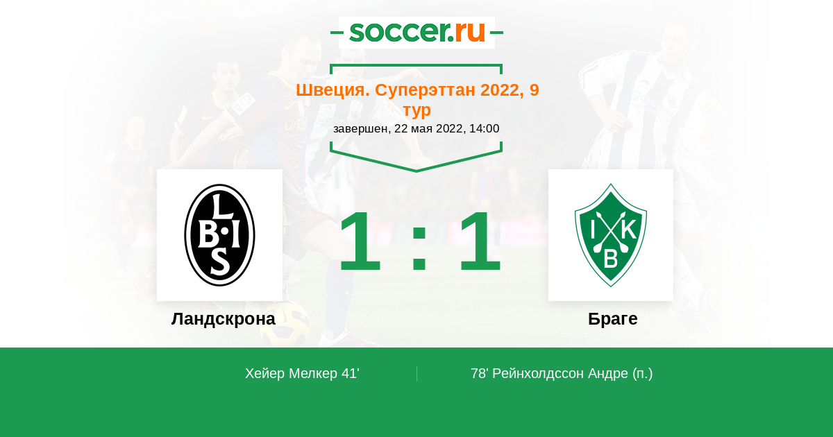 Протокол матча Ландскрона против Браге