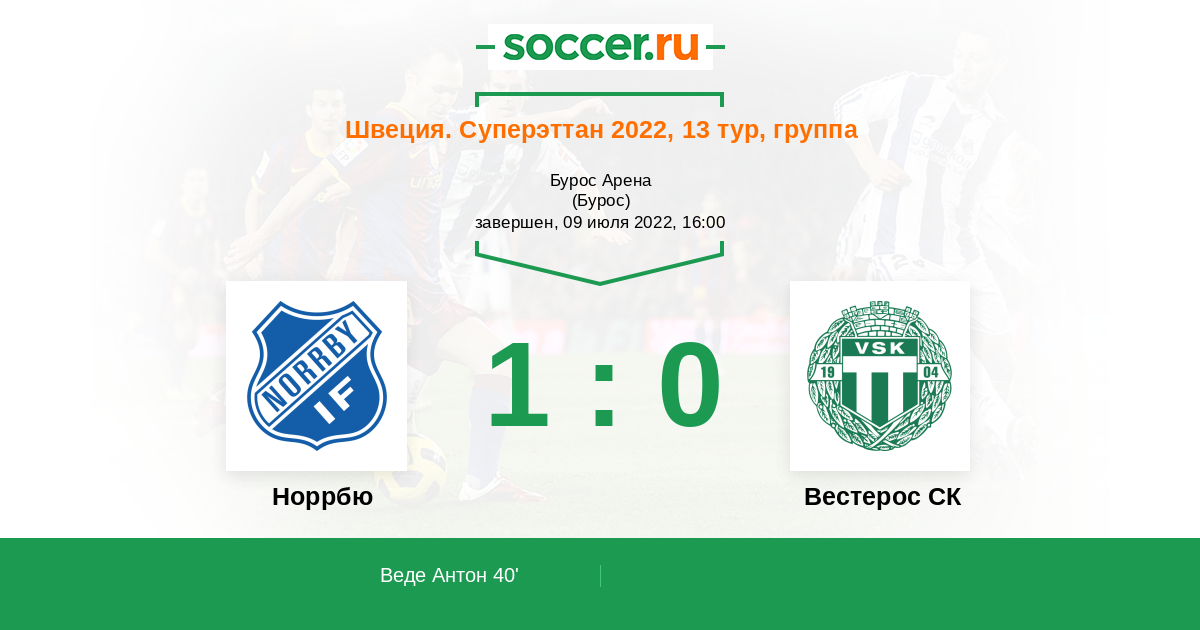 Протокол матча Норрбю против Вестерос СК
