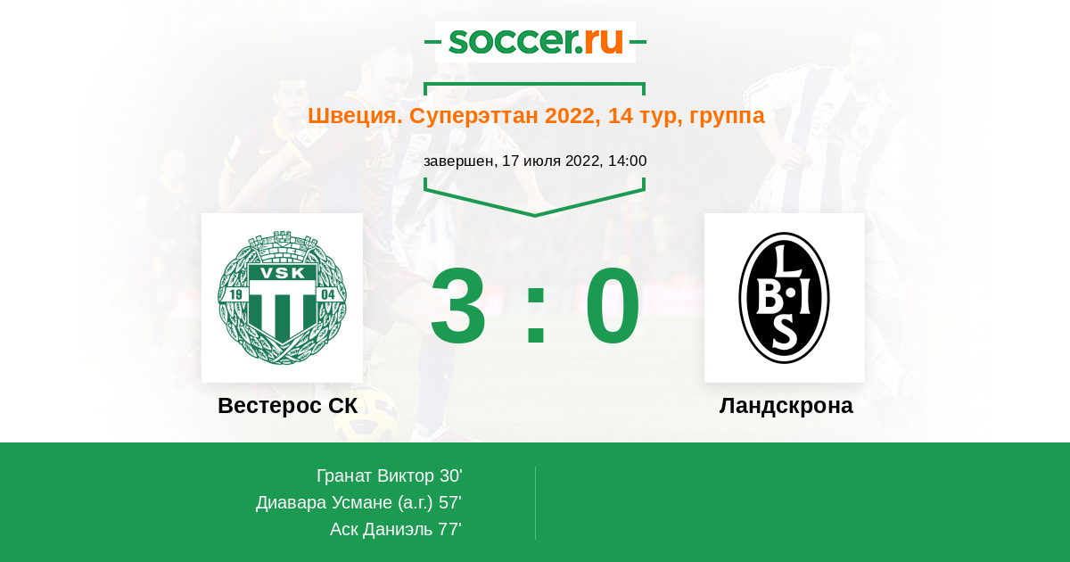 77' (3:0) Аск Даниэль (8) (Йоханссон Симон (6))