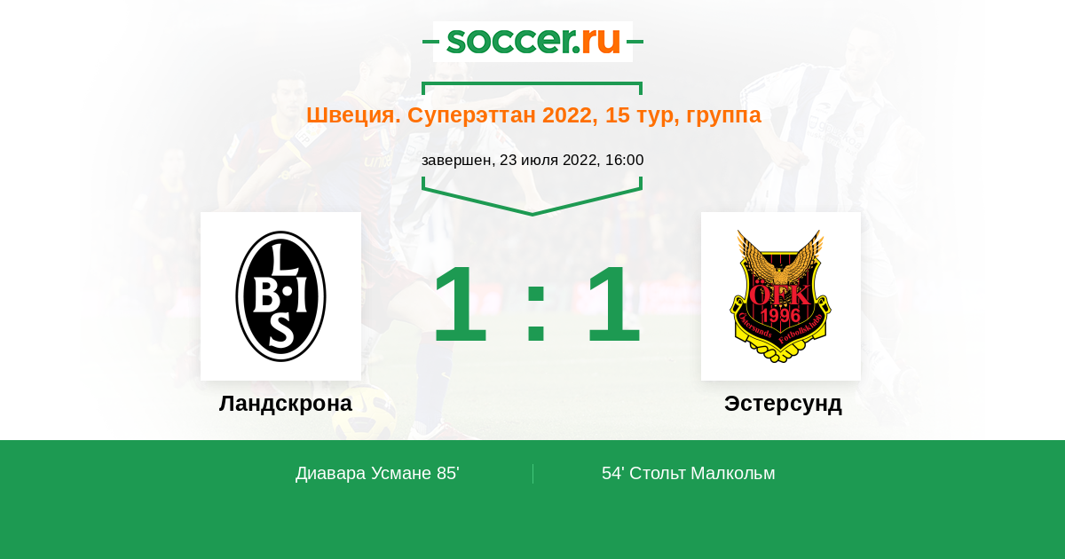 Протокол матча Ландскрона против Эстерсунд