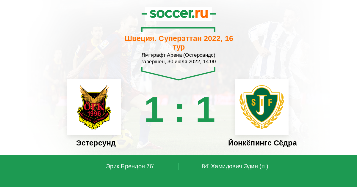 Протокол матча Эстерсунд против Йонкёпингс Сёдра