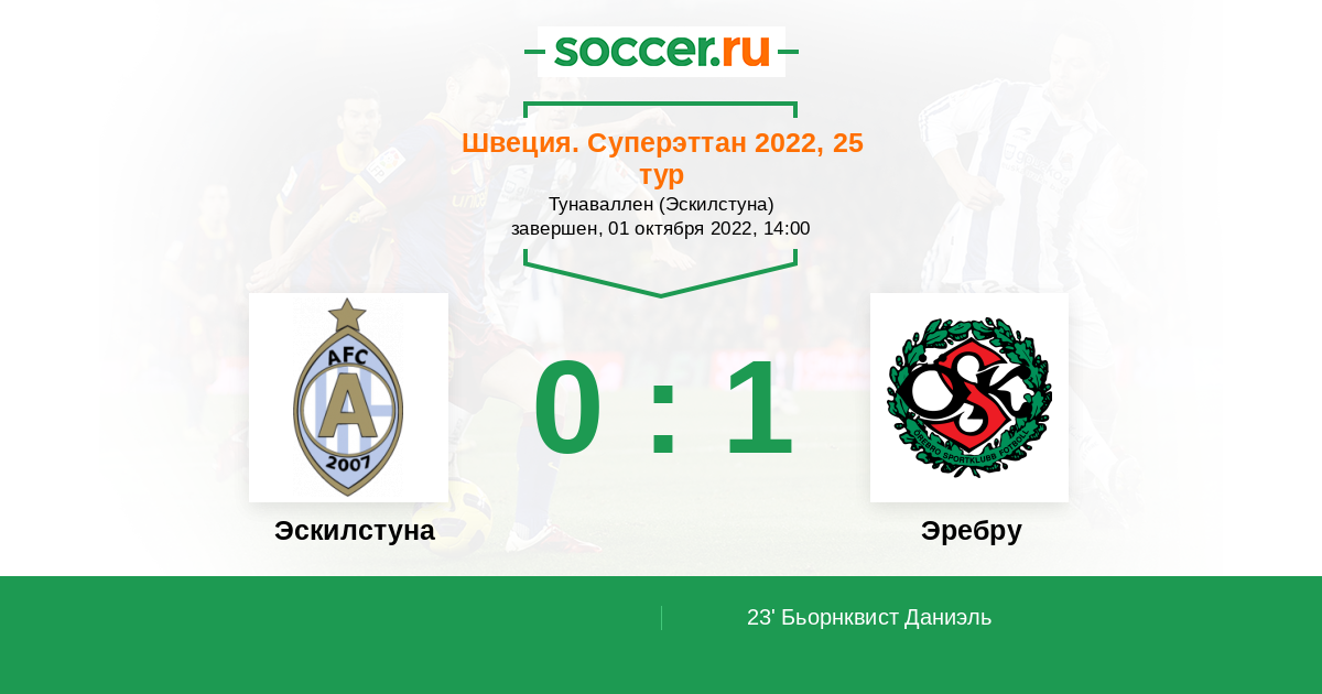 Протокол матча Эскилстуна против Эребру