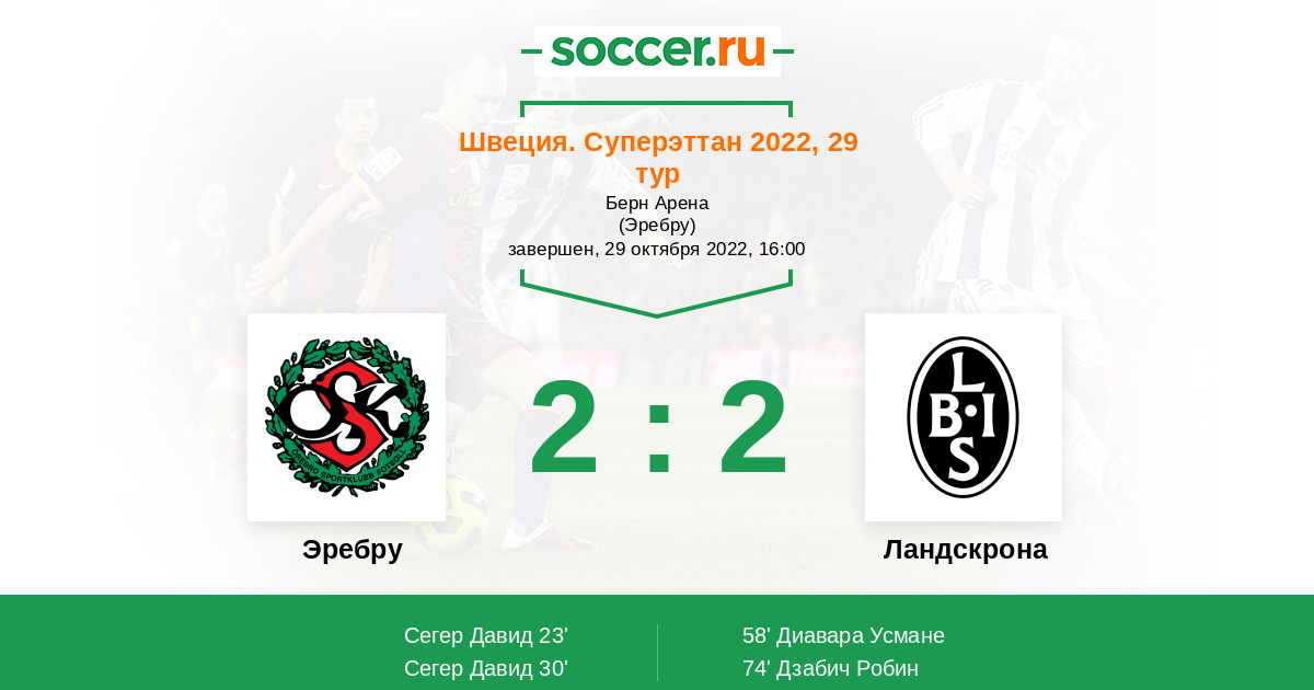 Протокол матча Эребру против Ландскрона