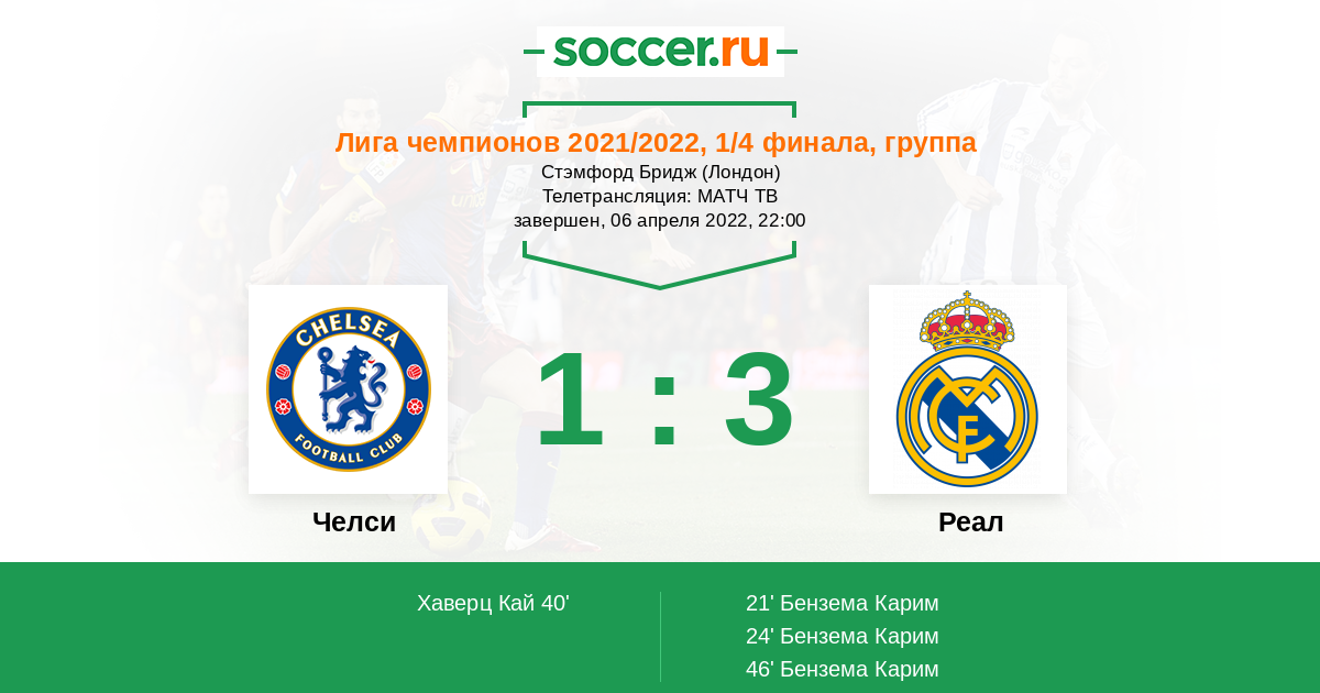 Считал Реал фаворитом этой пары, учитывая великолепную форму Бензема и спад у Челси, но 1-3 в первой игре это слишком...давайте Синие соберитесь, а то ответка будет неинтересна