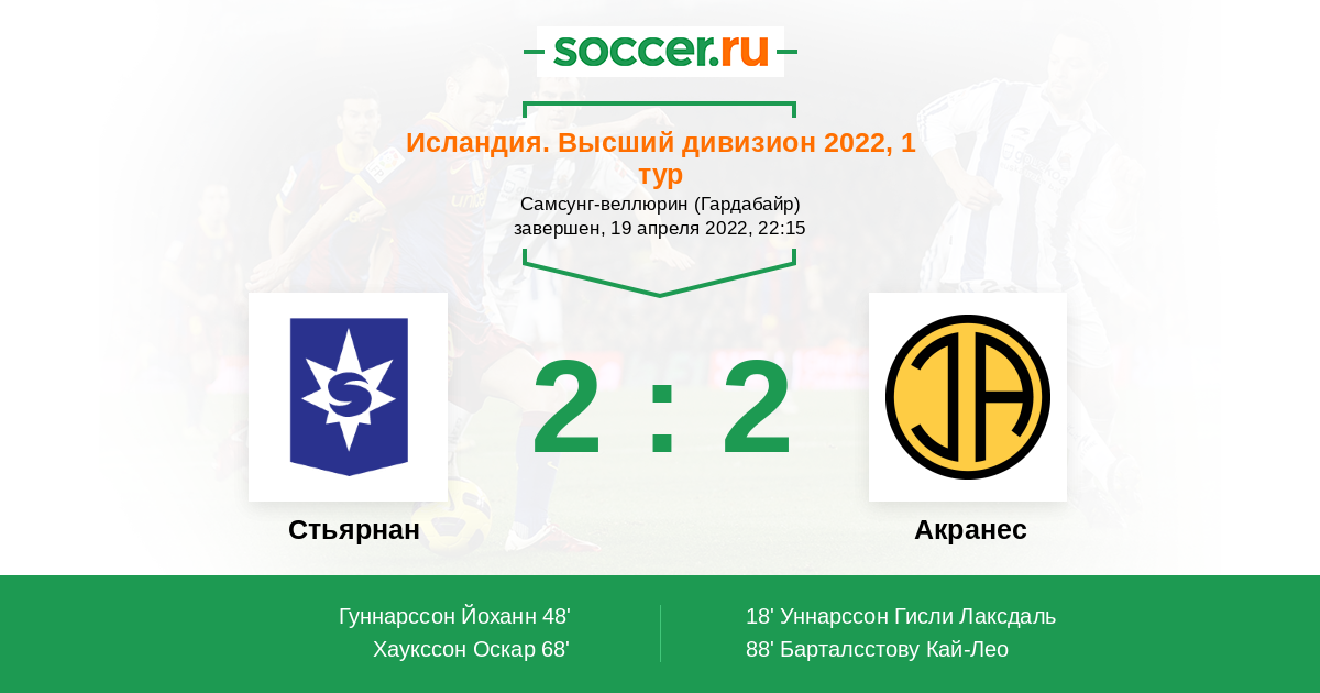 18' (0:1) Уннарссон Гисли Лаксдаль (17)