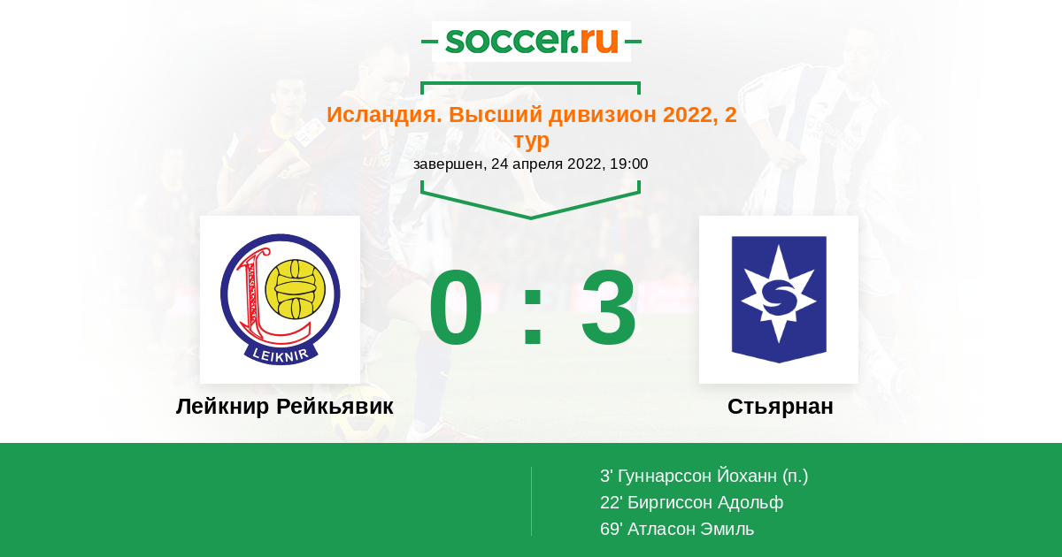 Протокол матча Лейкнир Рейкьявик против Стьярнан