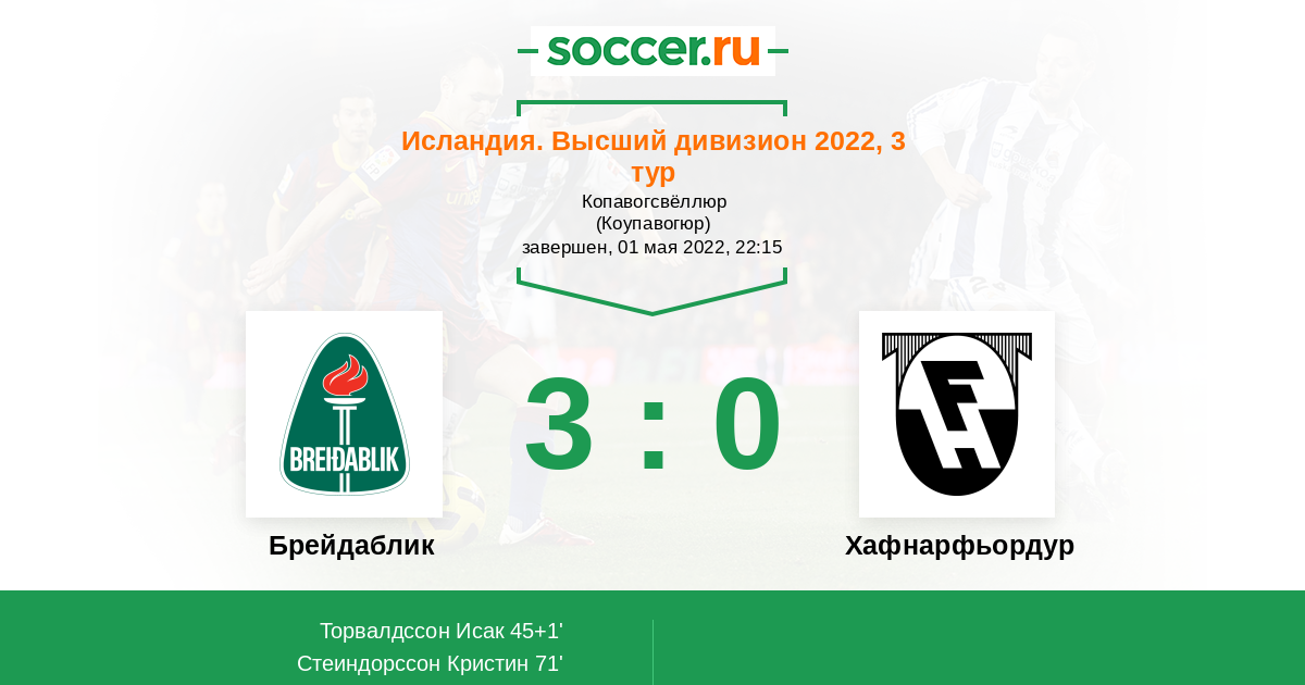 Протокол матча Брейдаблик против Хафнарфьордур