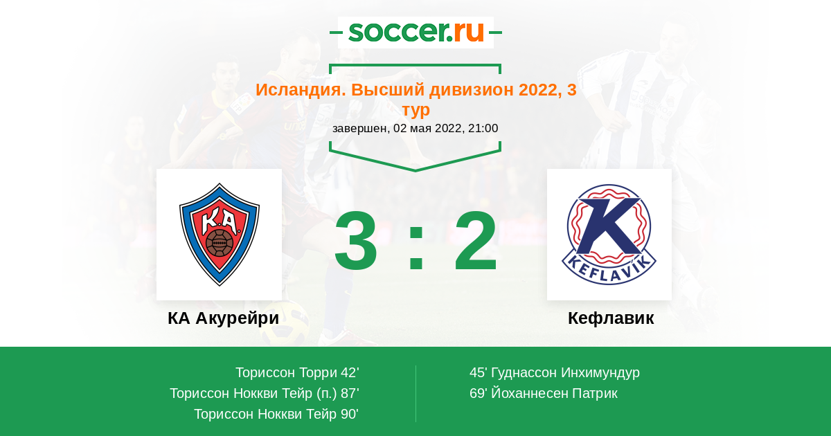 Протокол матча КА Акурейри против Кефлавик