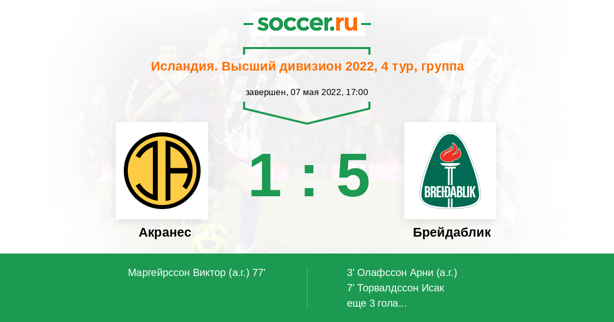 7' (0:2) Торвалдссон Исак (22) (Эйолфссон Гисли (11))