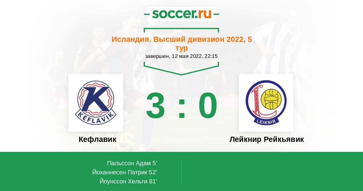 Протокол матча Кефлавик против Лейкнир Рейкьявик