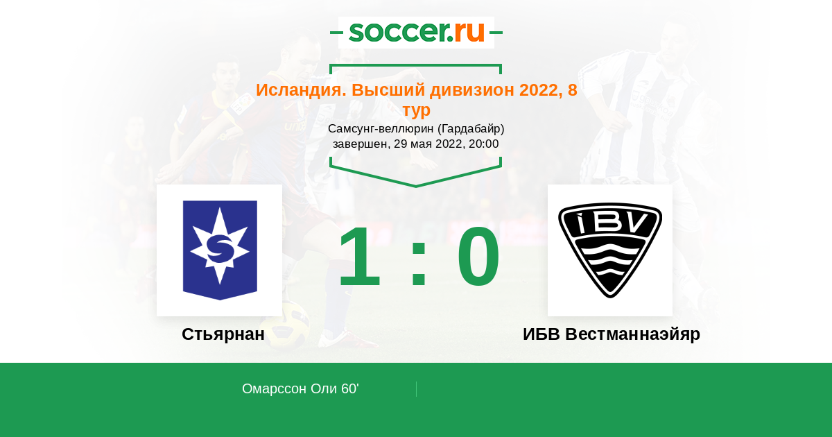 Протокол матча Стьярнан против ИБВ Вестманнаэйяр