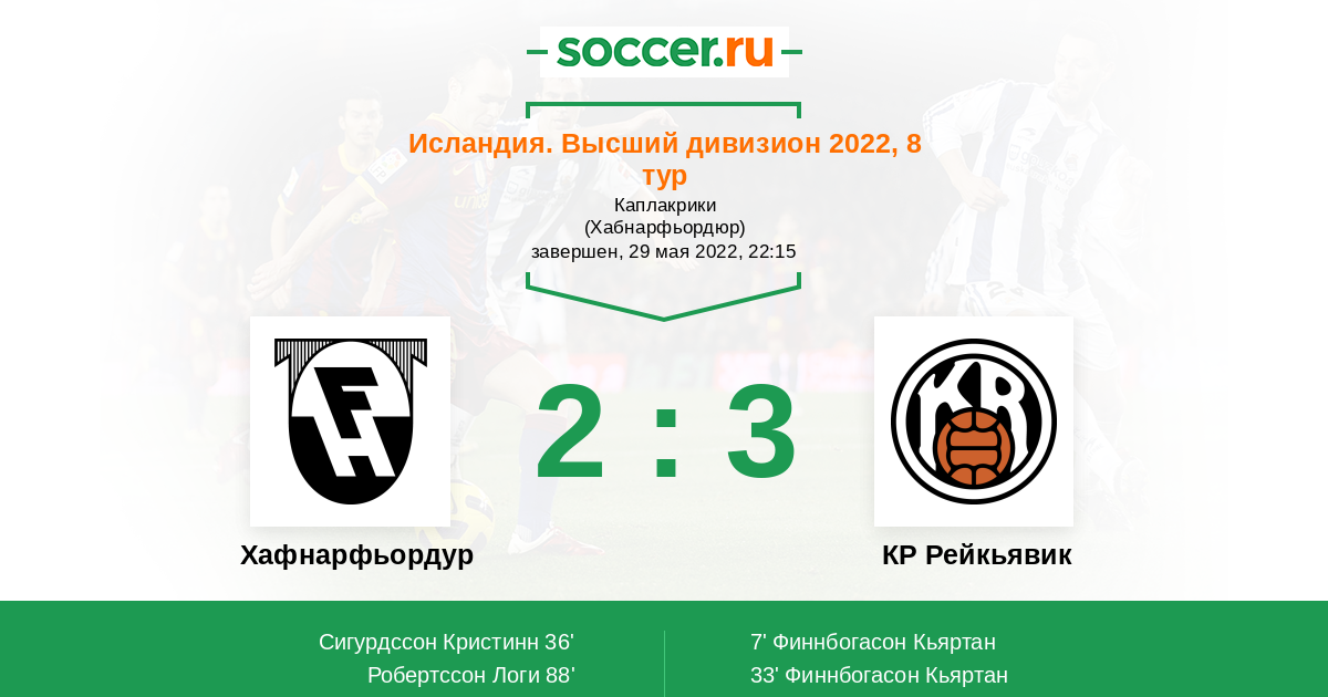Протокол матча Хафнарфьордур против КР Рейкьявик