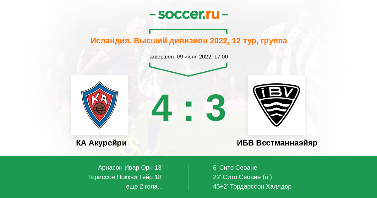 Протокол матча КА Акурейри против ИБВ Вестманнаэйяр