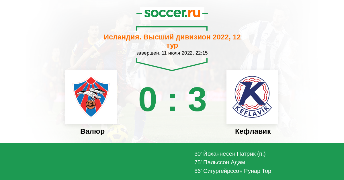 Протокол матча Валюр против Кефлавик