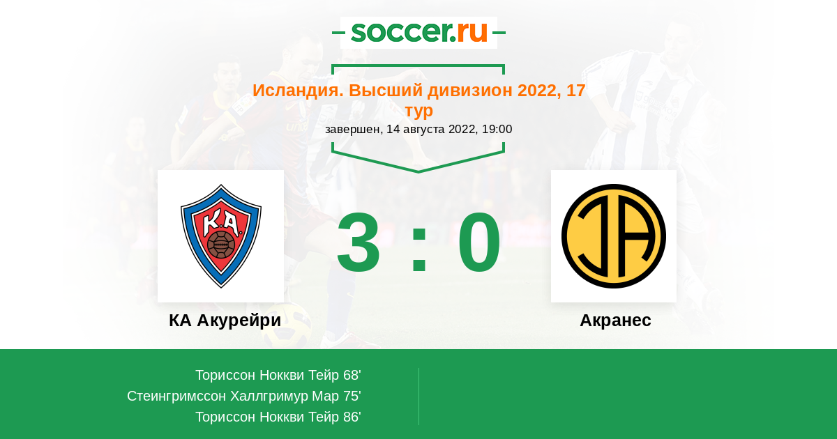 Протокол матча КА Акурейри против Акранес