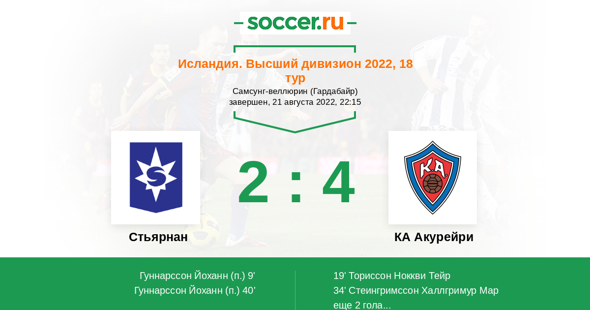 Протокол матча Стьярнан против КА Акурейри