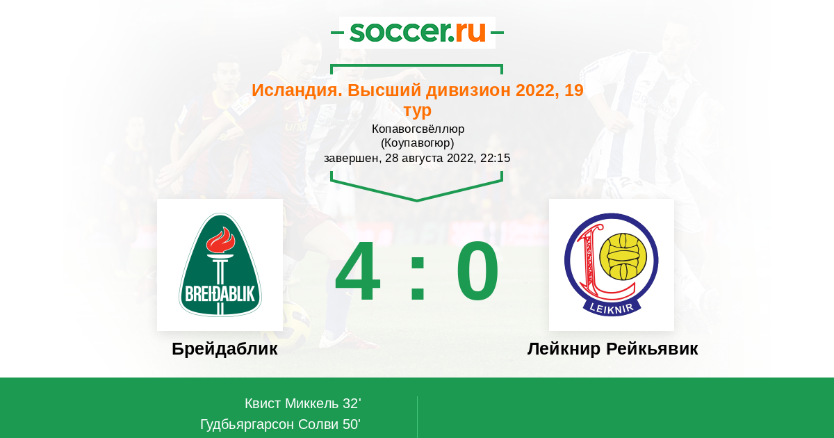 Протокол матча Брейдаблик против Лейкнир Рейкьявик
