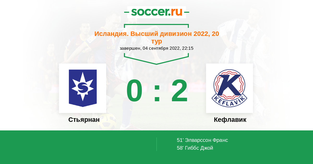 Протокол матча Стьярнан против Кефлавик