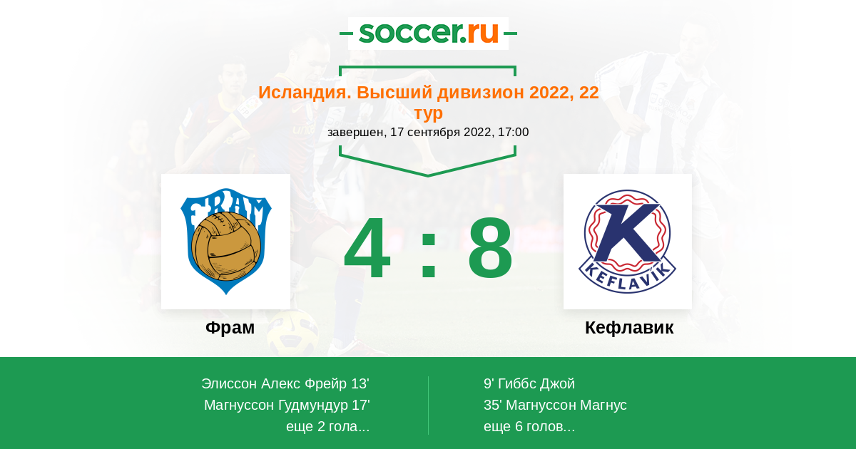 Протокол матча Фрам против Кефлавик