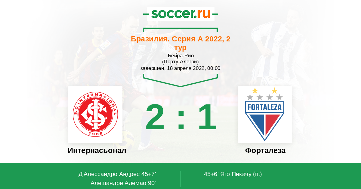 45+6' (0:1) Яго Пикачу (22)