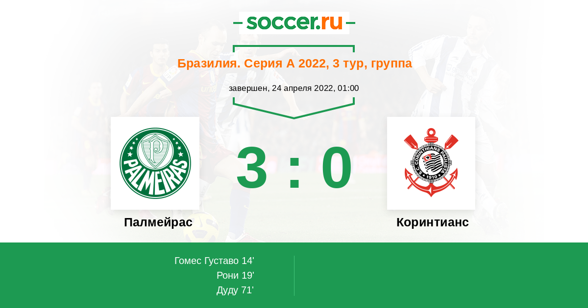 Протокол матча Палмейрас против Коринтианс