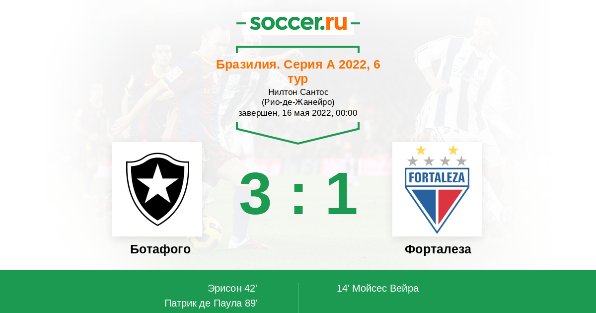 Протокол матча Ботафого против Форталеза