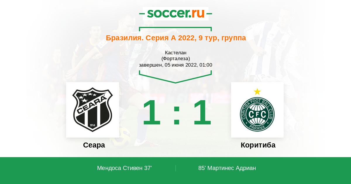 Протокол матча Сеара против Коритиба
