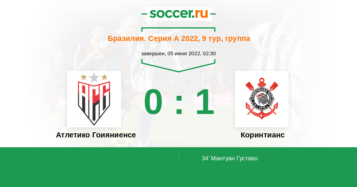 Протокол матча Атлетико Гоияниенсе против Коринтианс