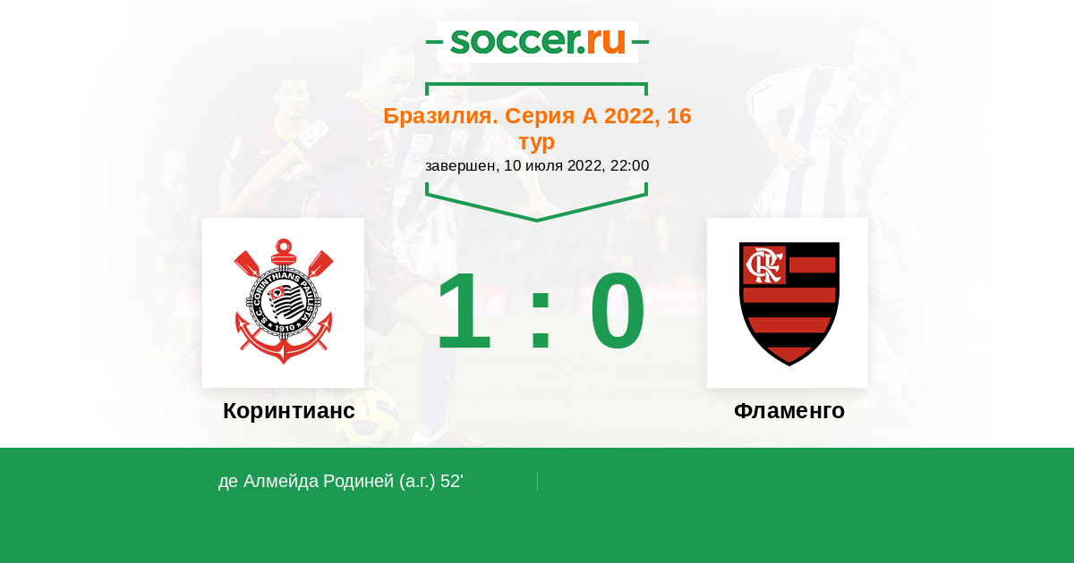 52' (1:0) Автогол де Алмейда Родиней (22)