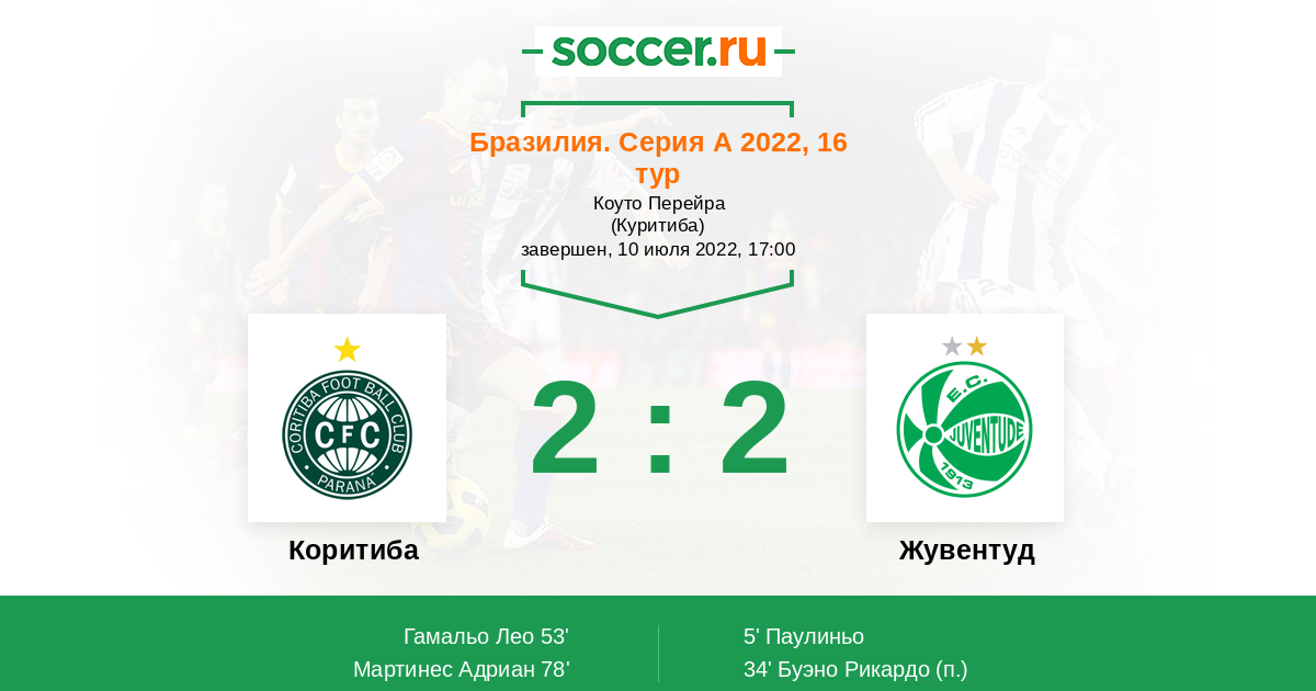 Протокол матча Коритиба против Жувентуд