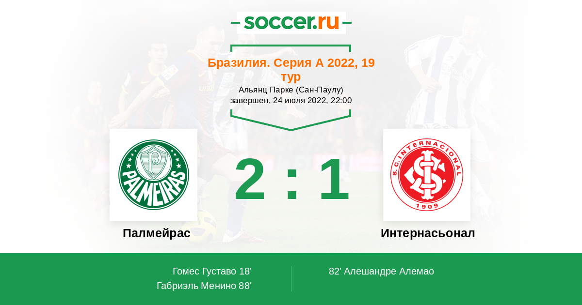 Протокол матча Палмейрас против Интернасьонал